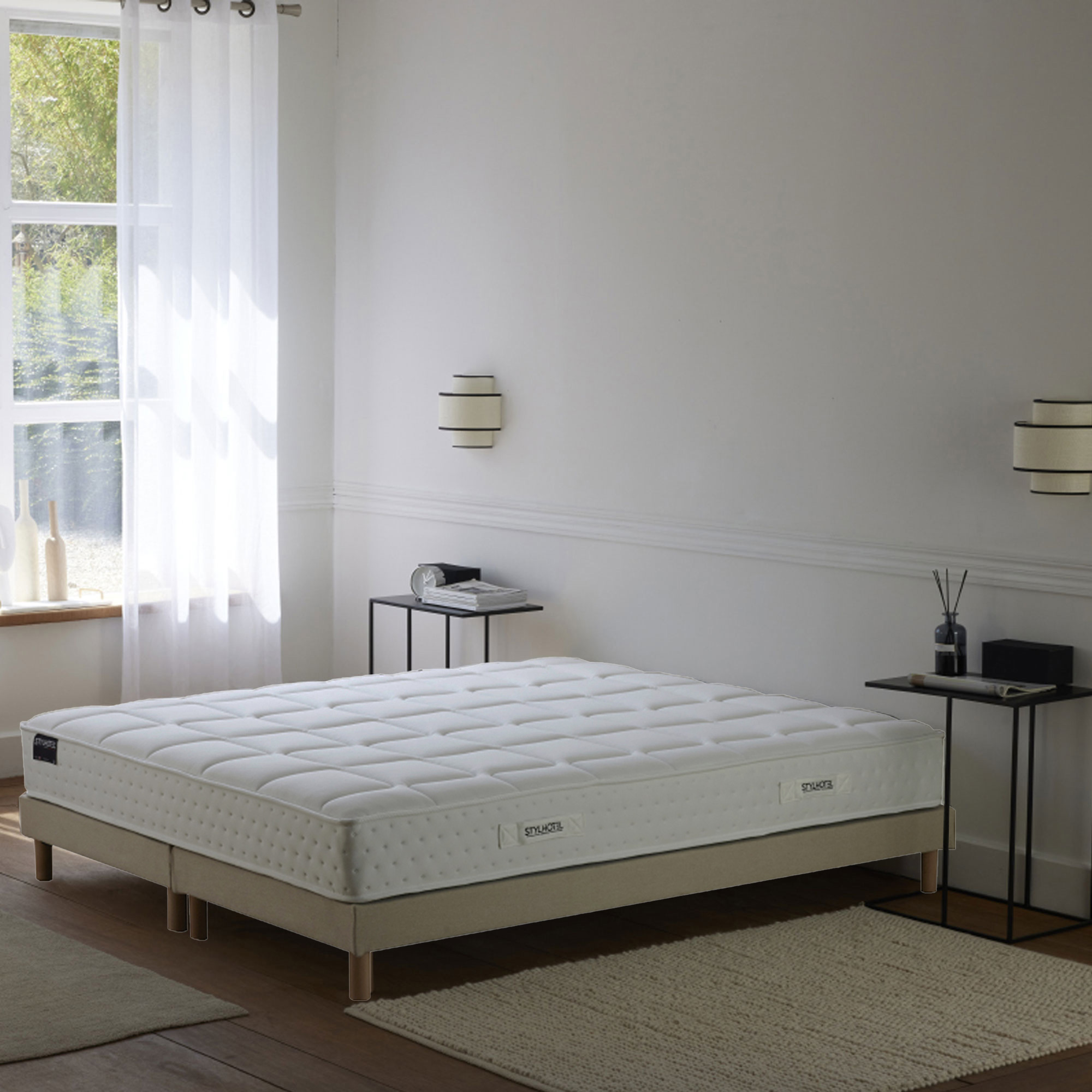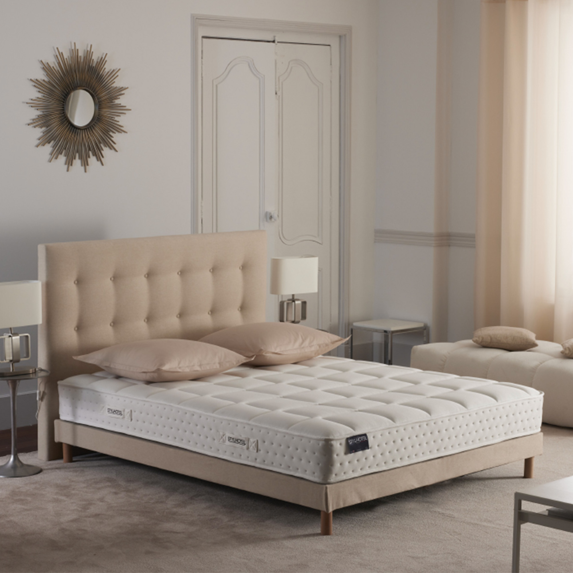 Développée à partir des standards du confort hôtelier, la suspension TUDOR® allie robustesse, stabilité et durabilité. Elle absorbe les mouvements sans les transmettre, offrant ainsi un couchage silencieux et reposant, même à deux. Par sa performance, elle incarne parfaitement la promesse STYLHOTEL : un confort structuré et professionnel, directement à domicile.